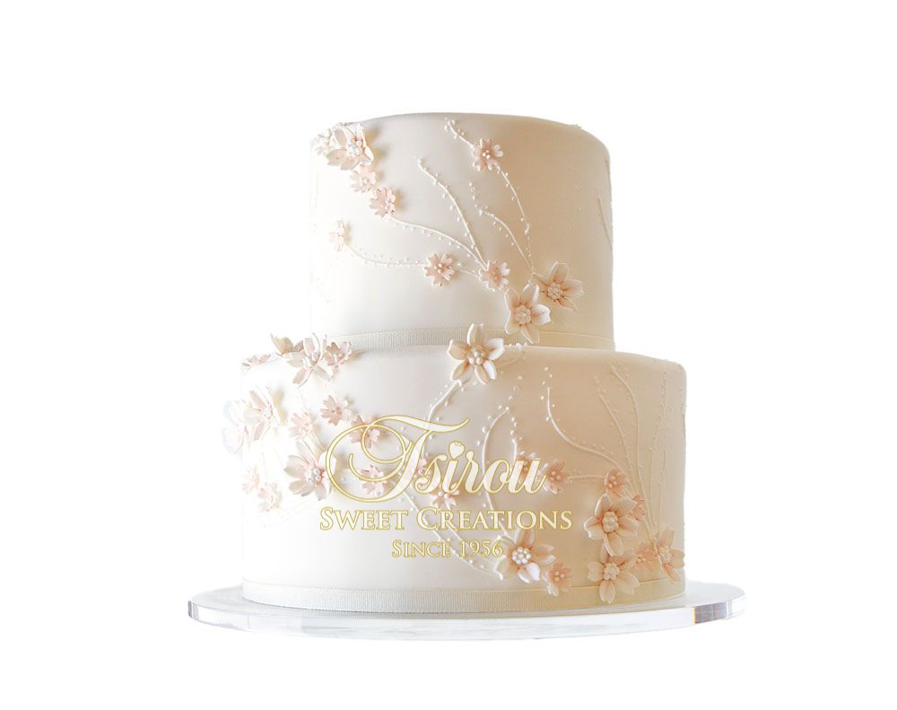 Με διακόσμηση απο χειροποίητα λουλουδάκια ζαχαρόπαστας.