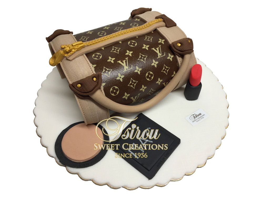 Τούρτα γενεθλίων με θέμα "τσαντάκι lv καφέ 3d"