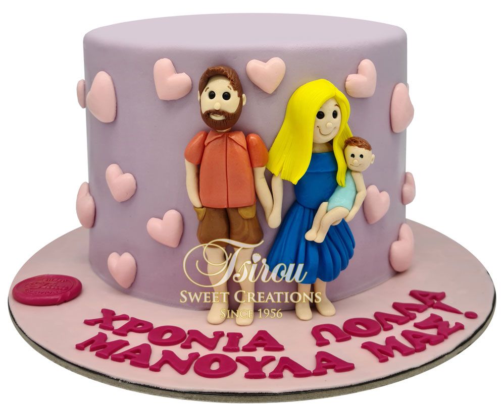 Τούρτα γενεθλίων με θέμα "χρόνια πολλά μαμά & μπαμπά 3d"